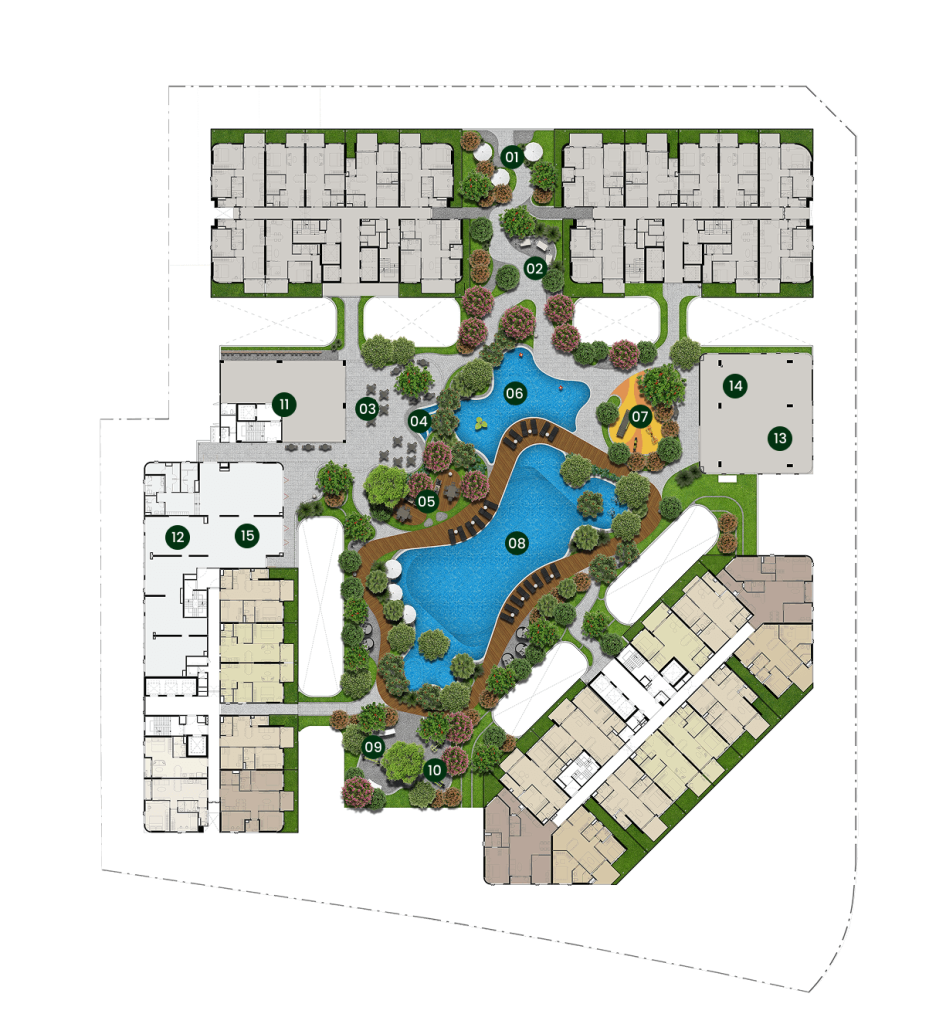 ✦︎ Tiện ích: Hồ bơi, công viên, khu vui chơi trẻ em, thư viện, vườn BBQ,...