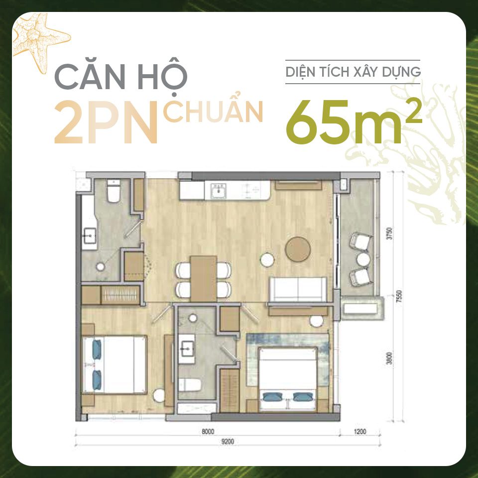 2PN (65m² - 80m²): Từ 4,6 tỷ
