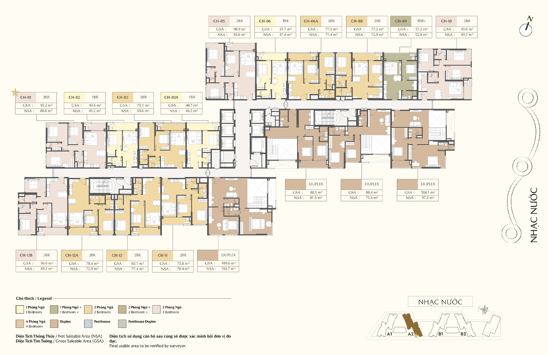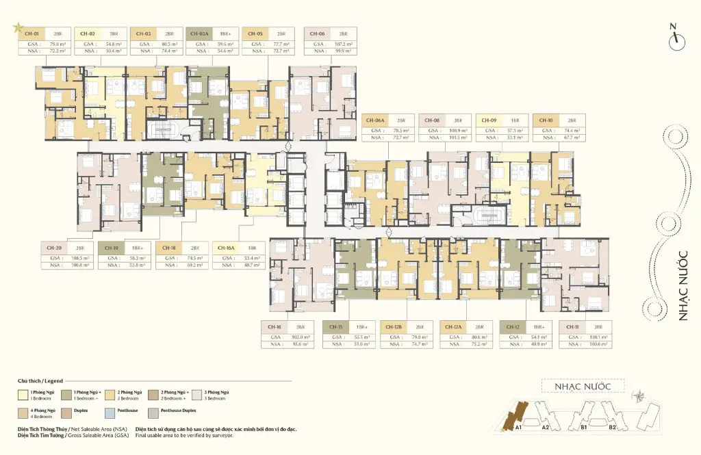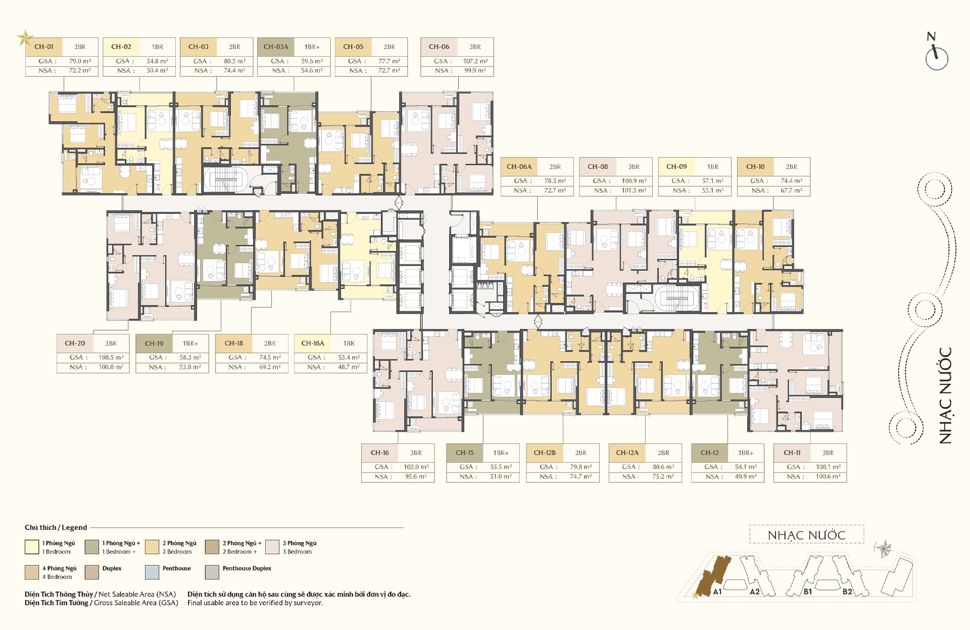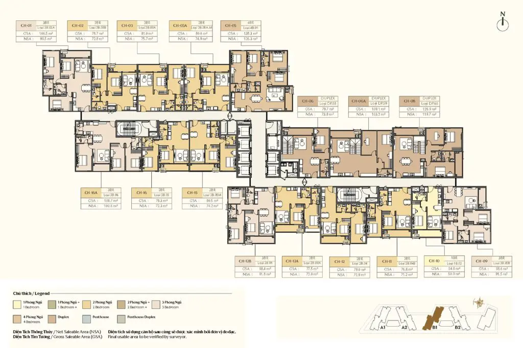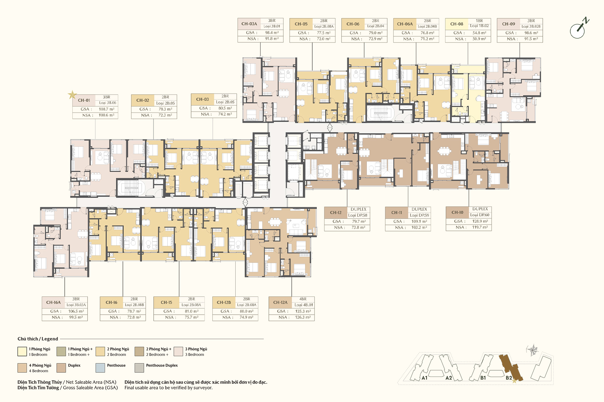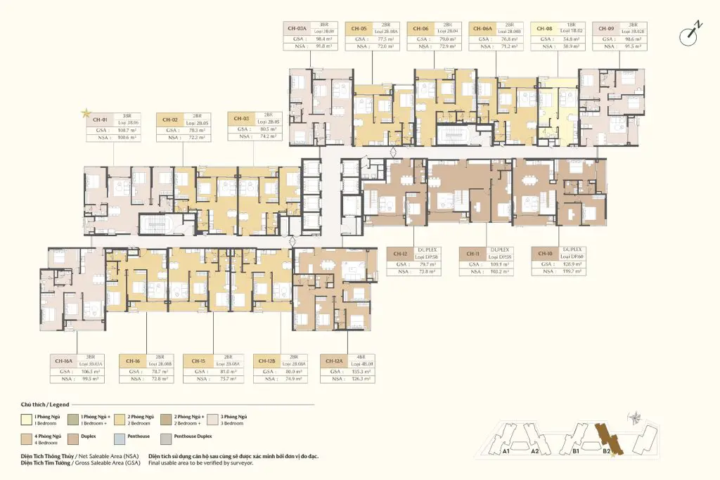 Loại hình căn hộ: 1PN - 4PN, Penthouse, Duplex