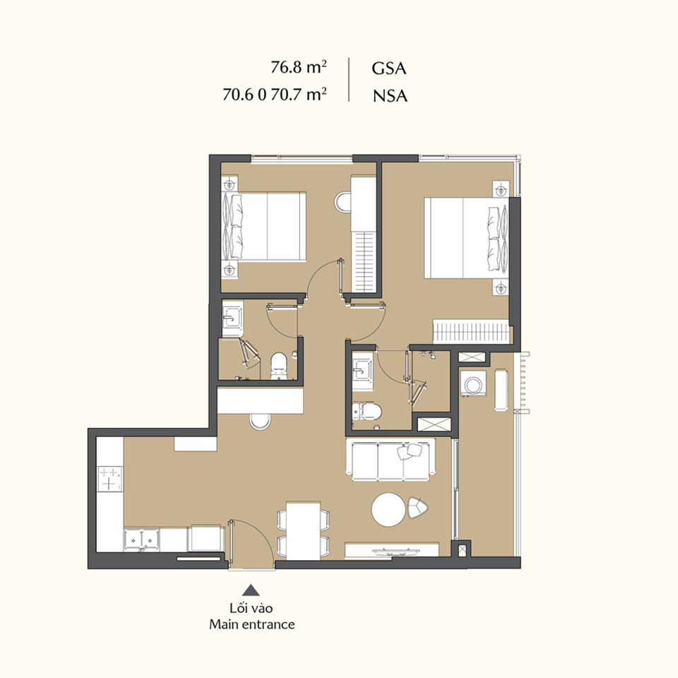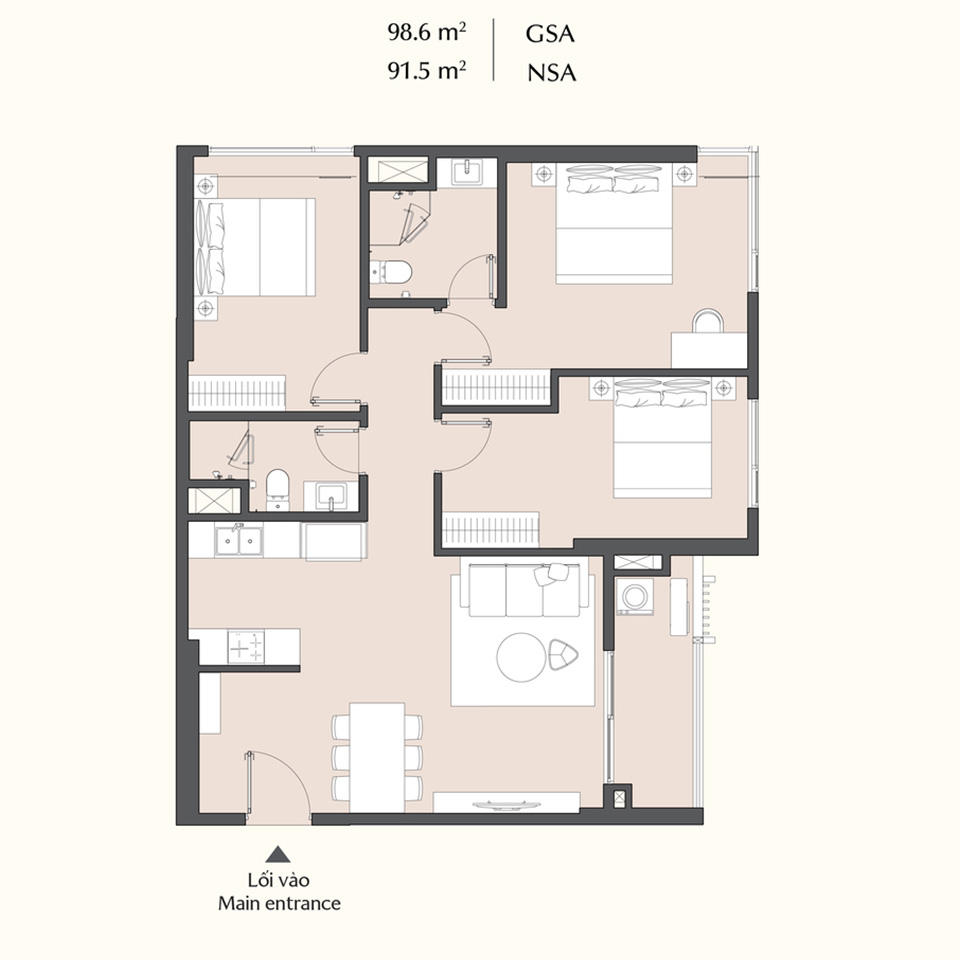✦︎ Căn hộ được thiết kế tối ưu để đón ánh sáng tự nhiên, các phòng ngủ có cửa kính tối ưu view, ban công rộng rãi