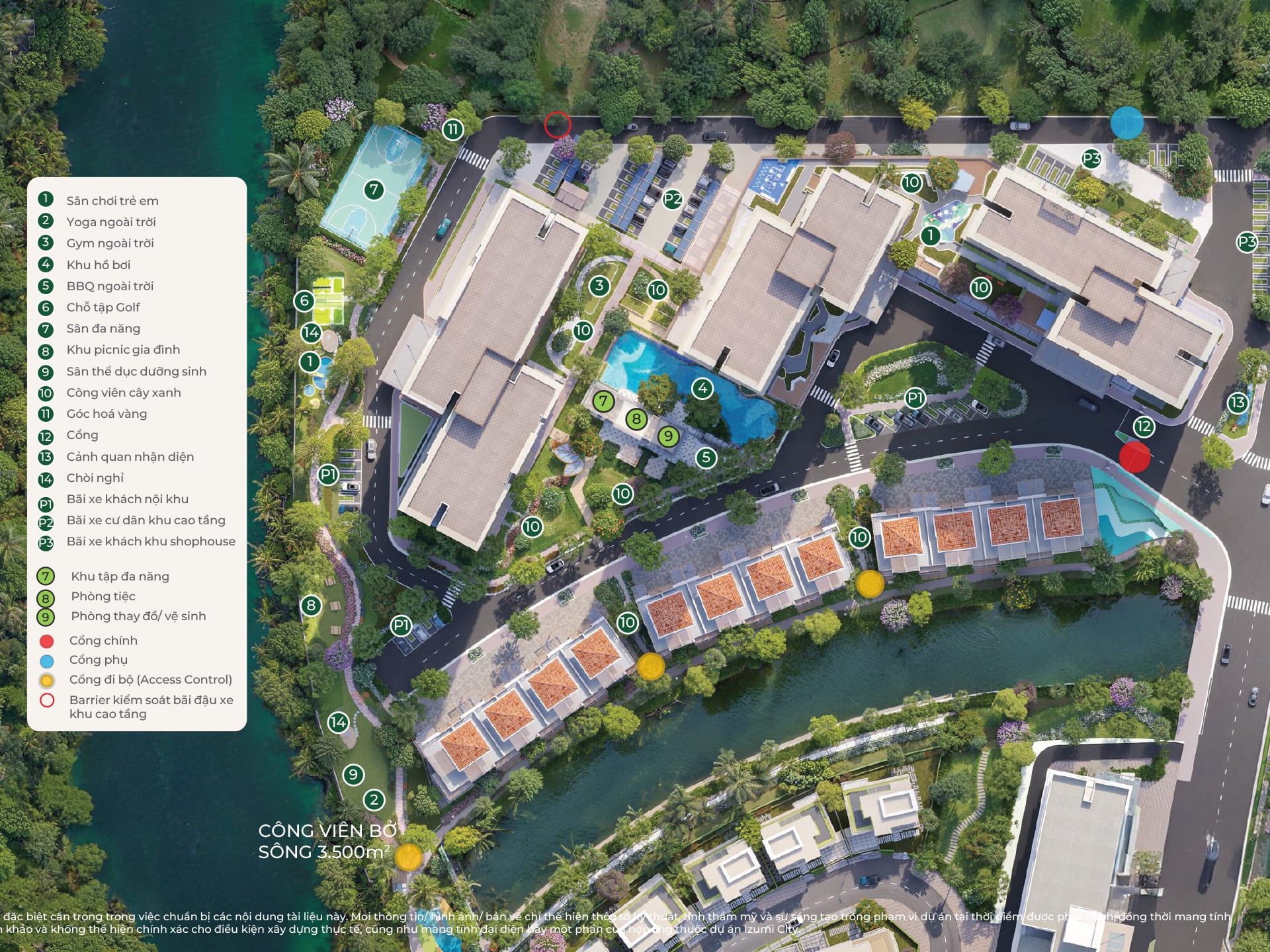 - Mua sắm & giải trí: Nhà phố thương mại; Khu đa chức năng – thương mại; Bến thuyền; Công viên cây xanh,...