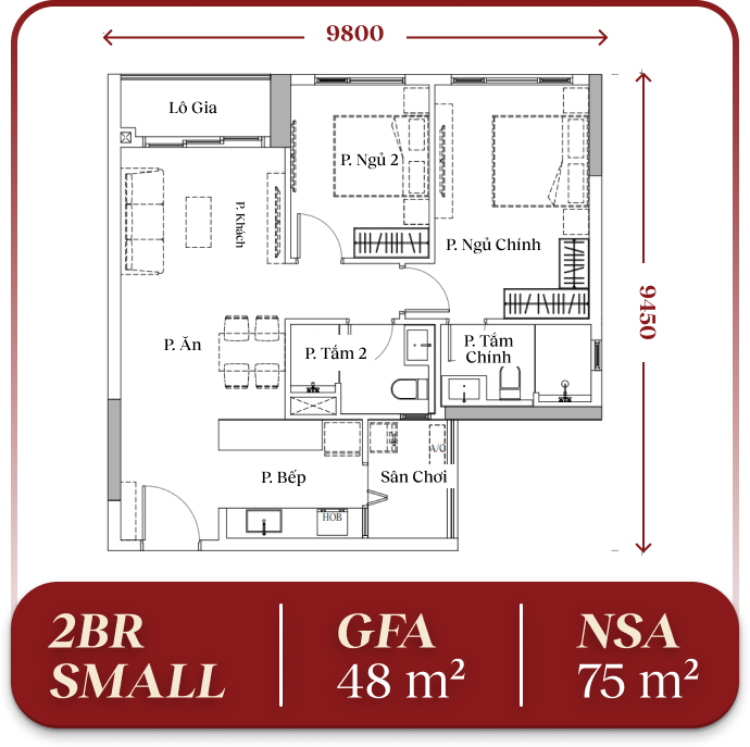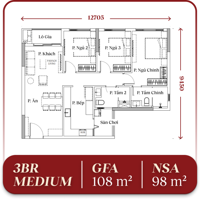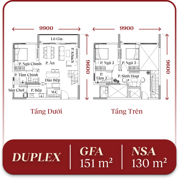 Loại hình & Diện tích: 2 PN: 75 - 101m2 ┃3 PN: 95 - 110m2┃Duplex : 130 - 161m2┃ Penthouse: 252 - 311m2