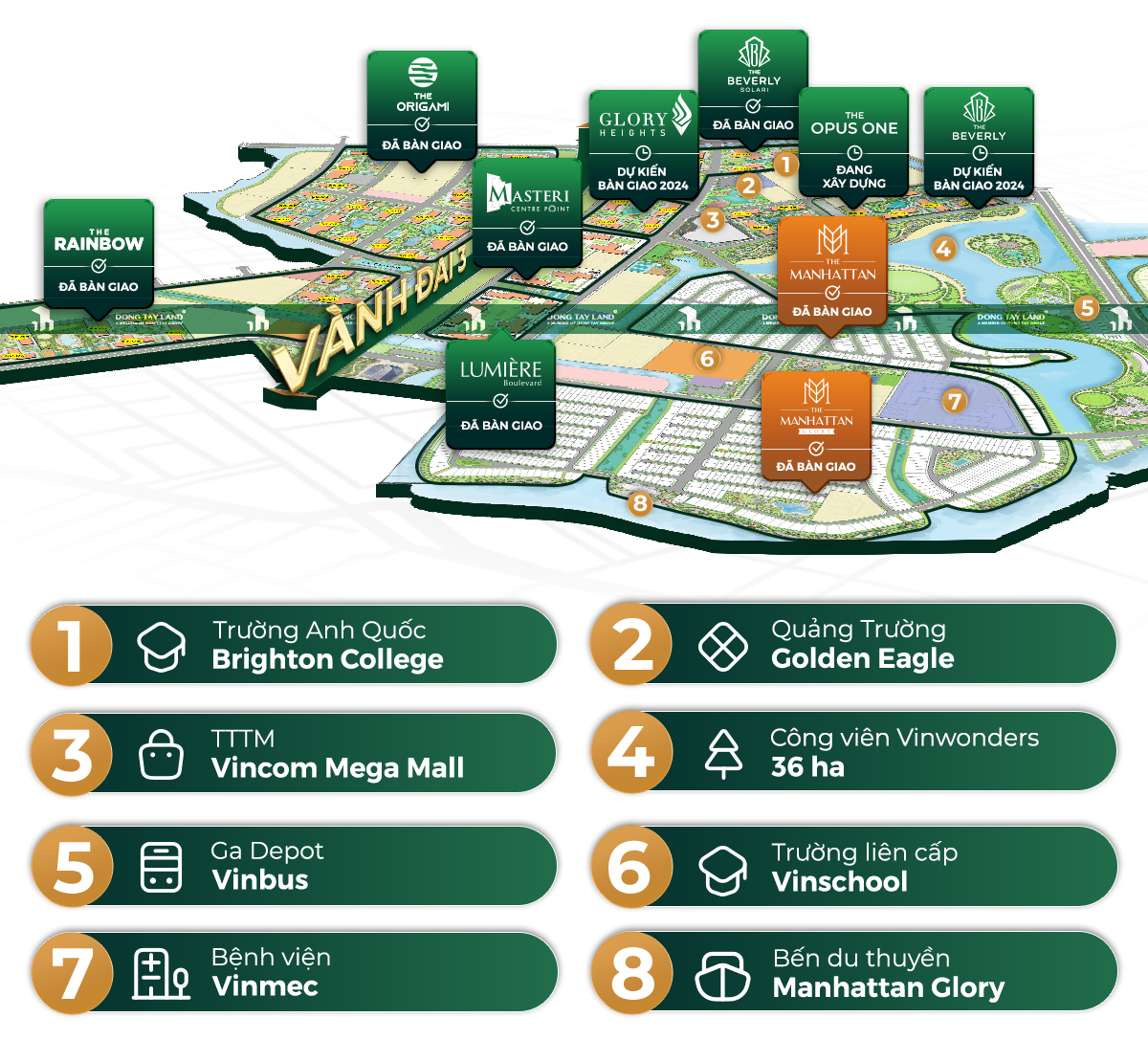 Trong đó, metro số 7 có ga metro nằm ngay cổng phân khu Manhattan Glory, giúp cư dân kết nối trực tiếp về trung tâm Tài chính & Hành chính TP. HCM chỉ 20 phút.