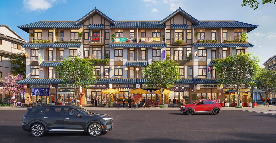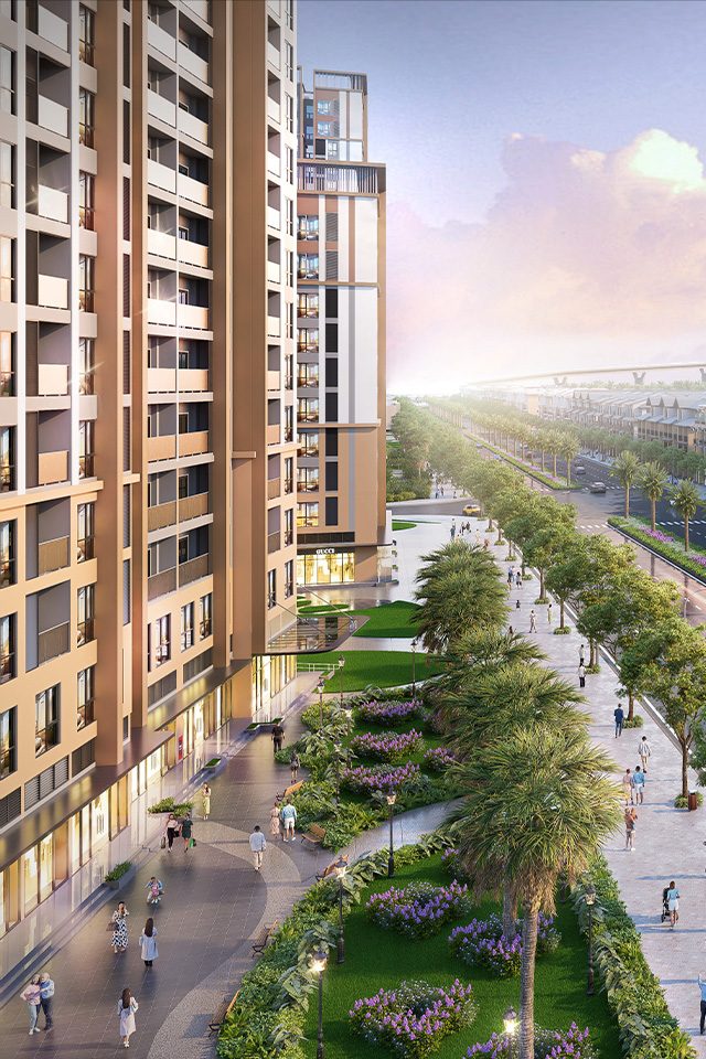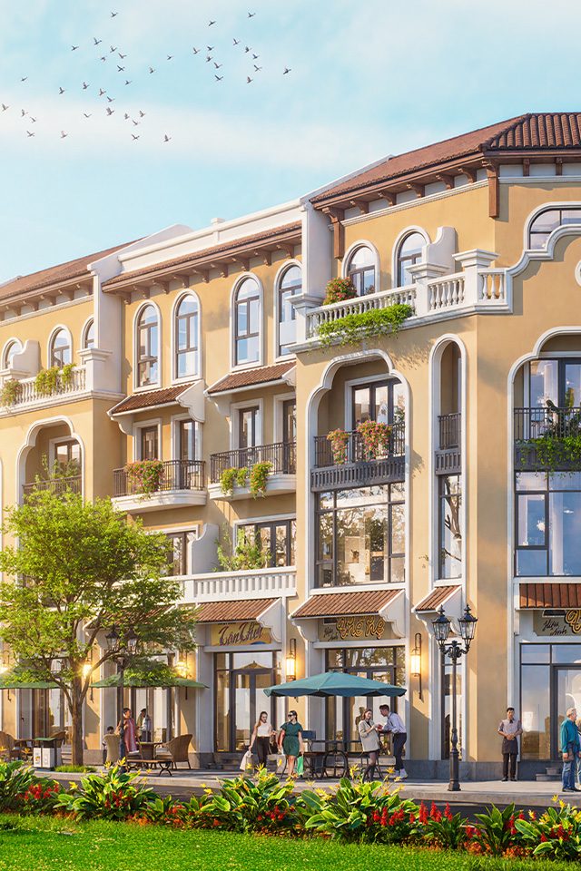 ✦ Shophouse: Loại hình sản phẩm chủ lực, nằm trên các trục đường huyết mạch và xung quanh các tiện ích biểu tượng, phục vụ kinh doanh 24/7