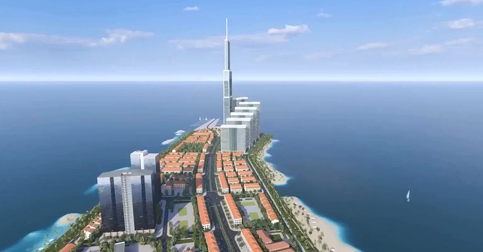 Tâm điểm là tòa tháp đôi 108 tầng - nằm trong Top 10 tòa tháp cao nhất thế giới, tích hợp văn phòng, khách sạn 5-6 sao. Thiết kế tối ưu cho môi trường biển, hệ thống chống bão - động đất đạt tiêu chuẩn quốc tế